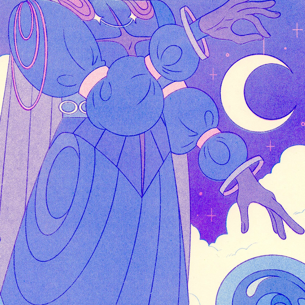 ✷ Three color risograph print: cornflower blue + fluorescent pink + violet
