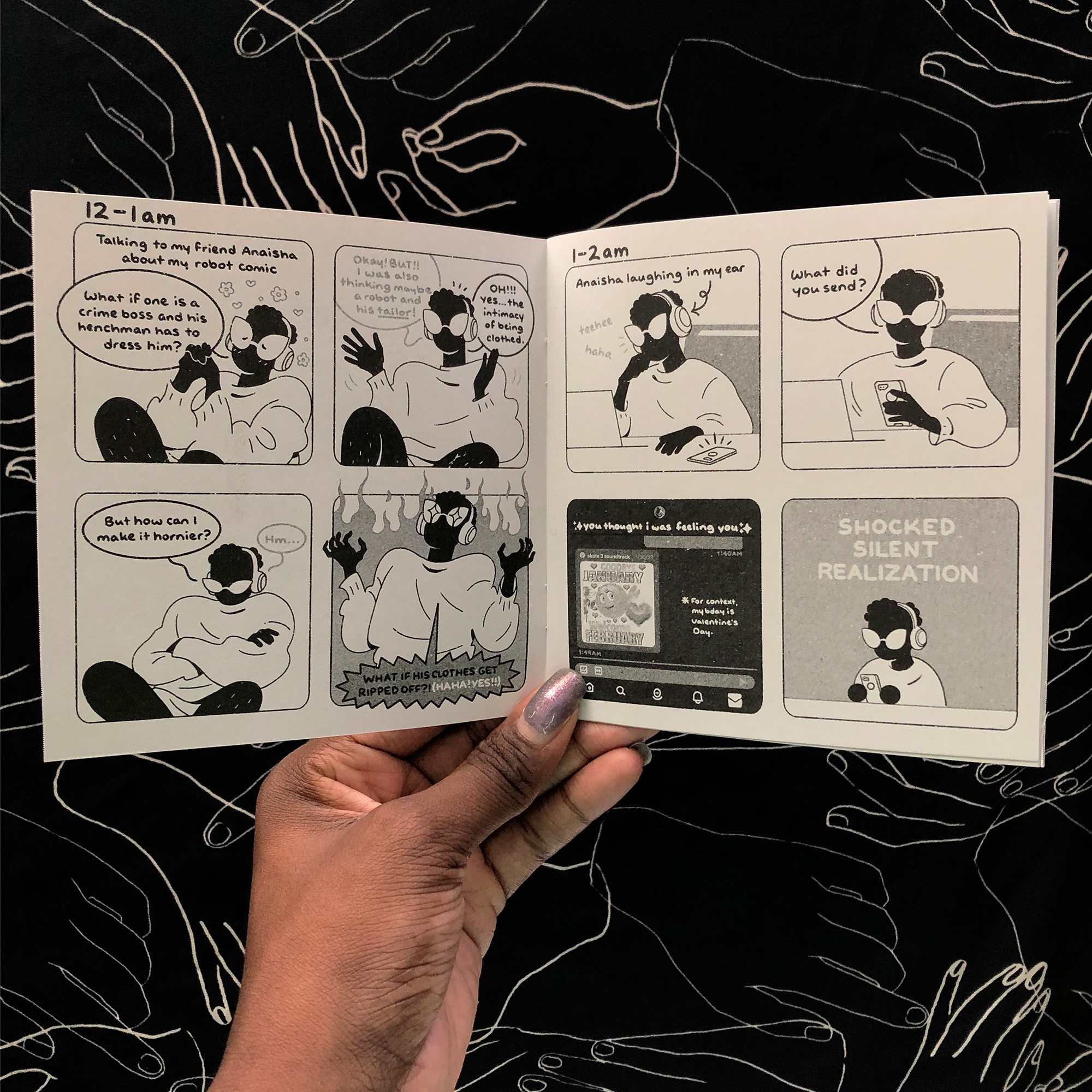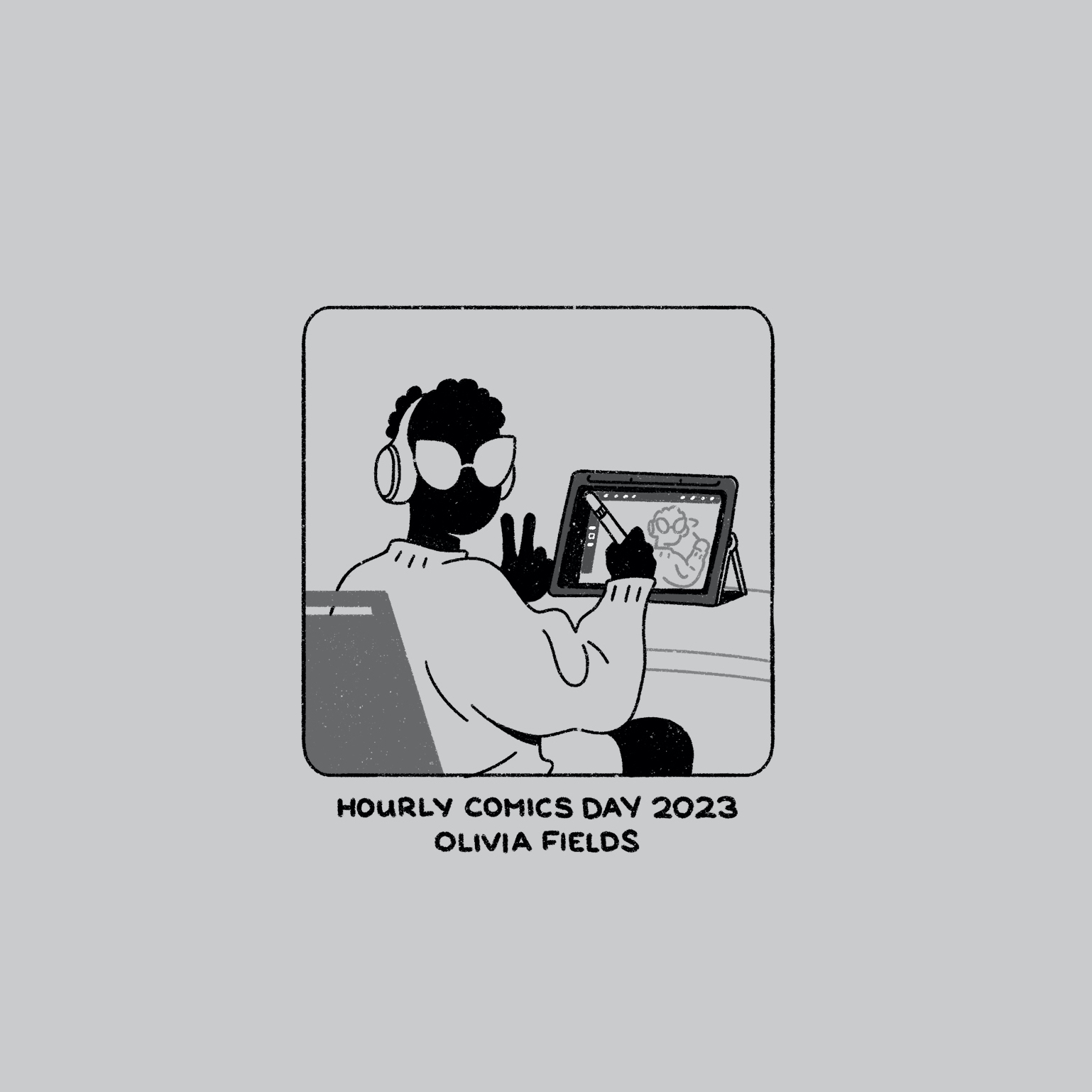 ✷ 5.25 x 5.5 inches ✷ A 12 page mini zine drawn for Hourly Comics Day 2023 ✷ Black risograph ink printed on gray paper