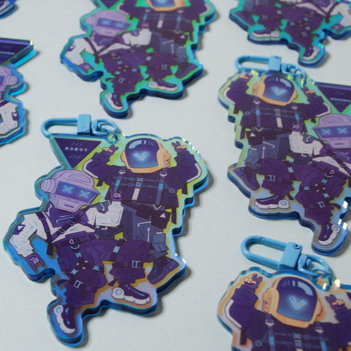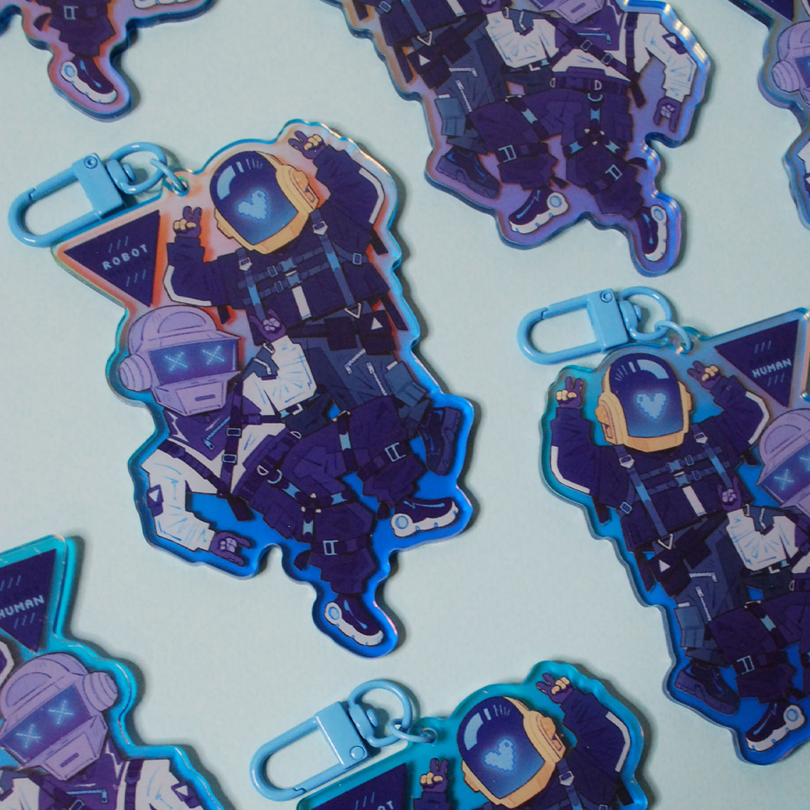 ✷ 4 inch ✷ Doubled sided rainbow acrylic charm with light blue gradient ✷ U-shaped light blue hook clasp accessory